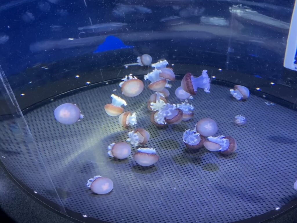ここはクラゲファンタジーホールという場所だったのですが、定期的に良い色でライトアップされてマジで奇麗でした。