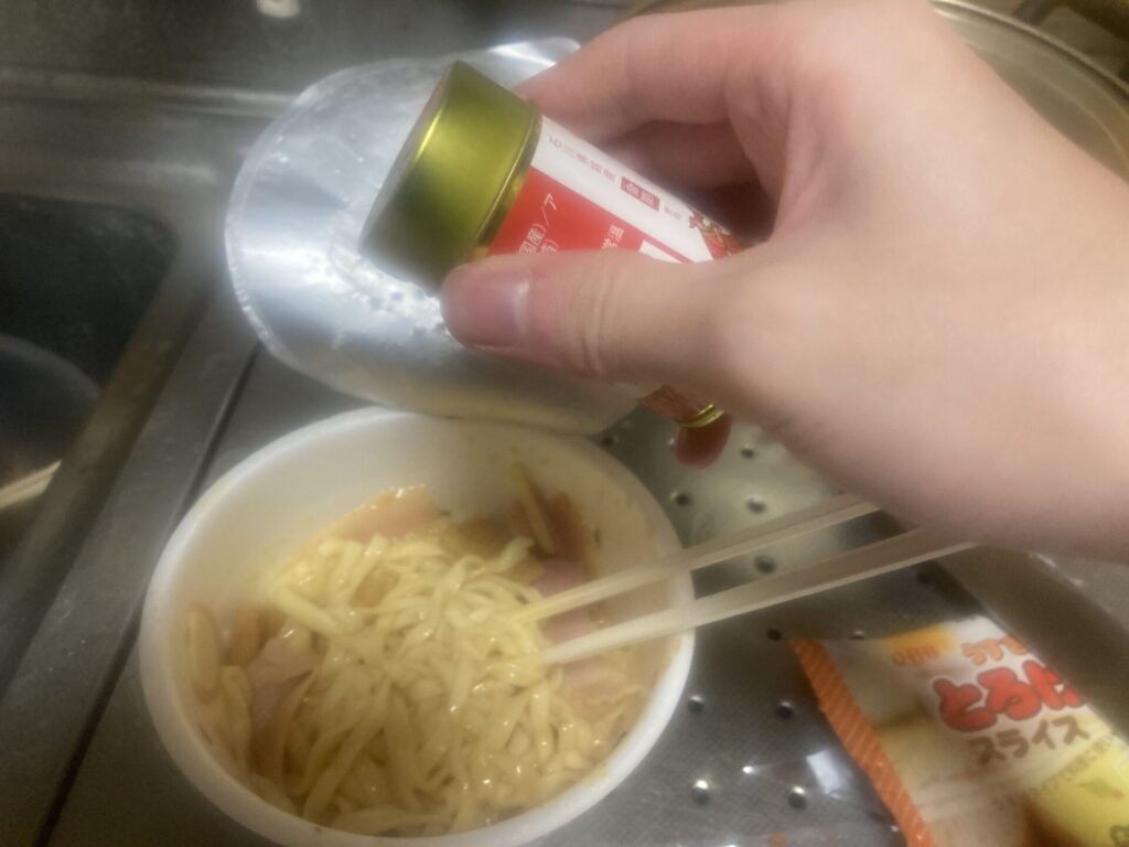 てか具材の前に粉末スープ入れるの忘れてました、爆笑~wwwwwww