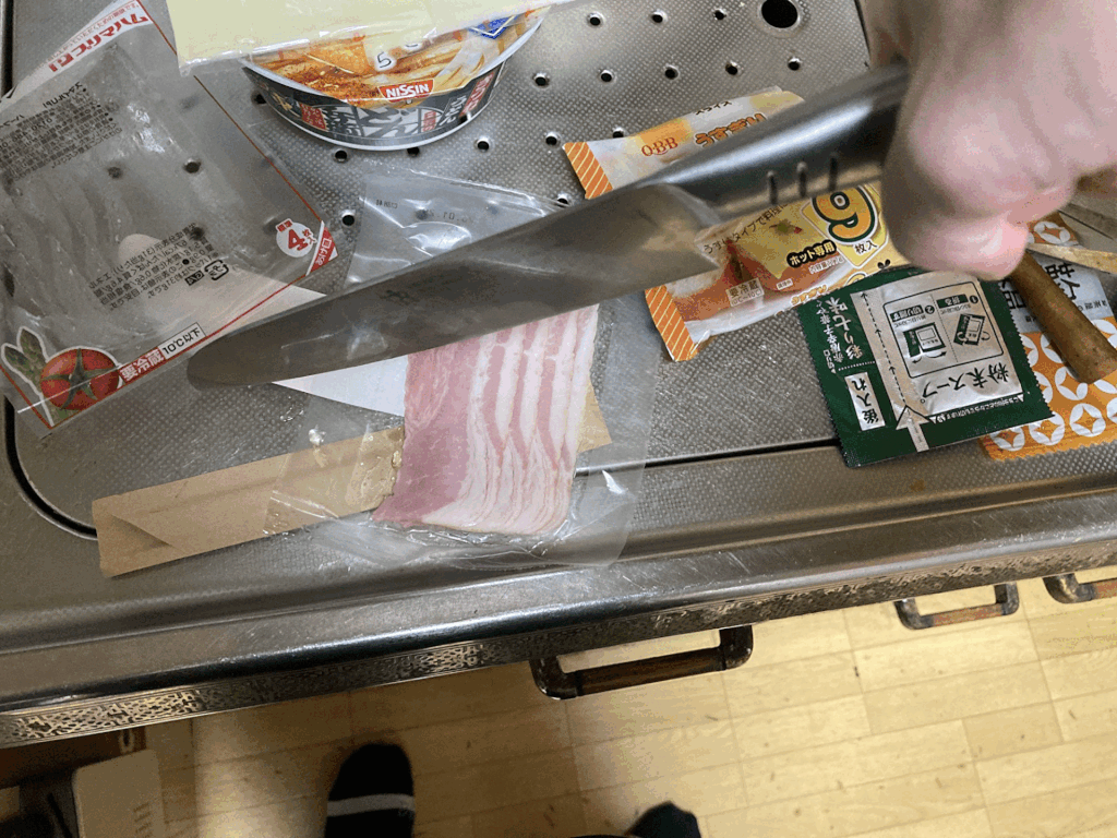 その間に用意していたベーコンも切っちゃいましょう。