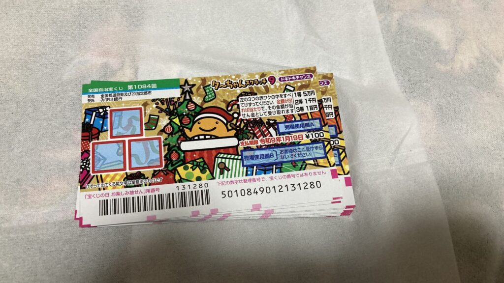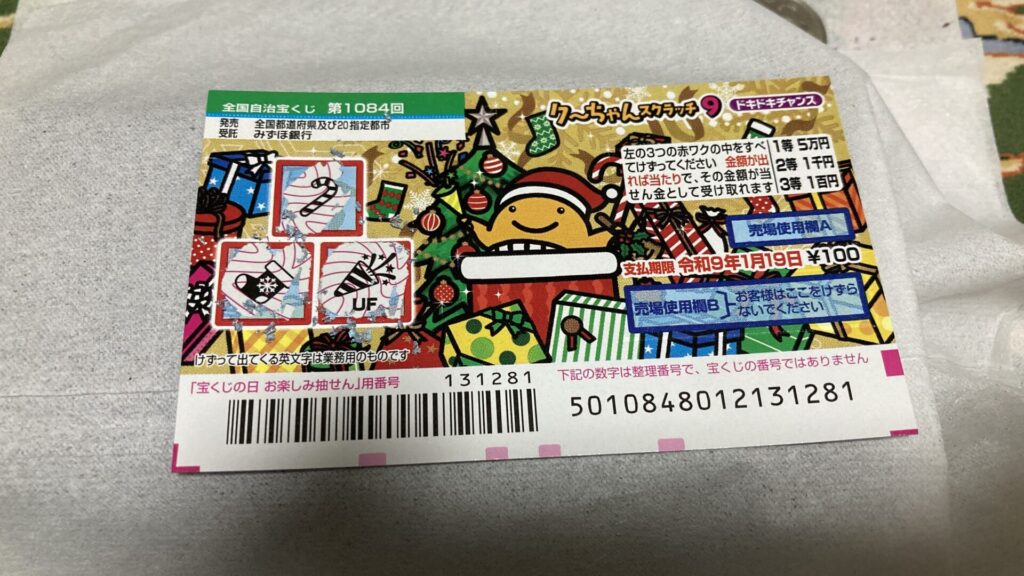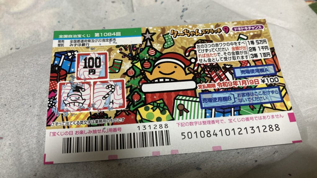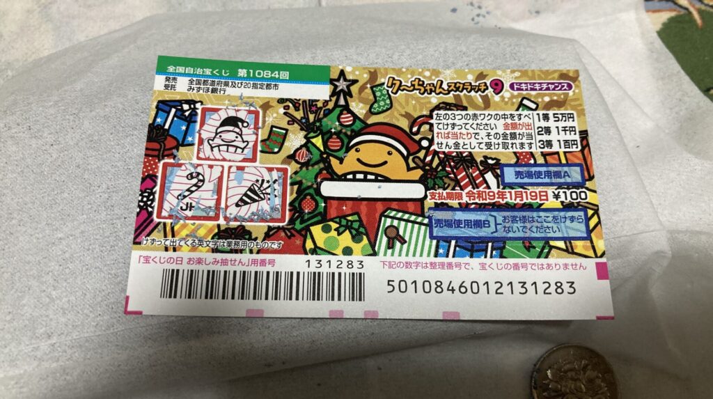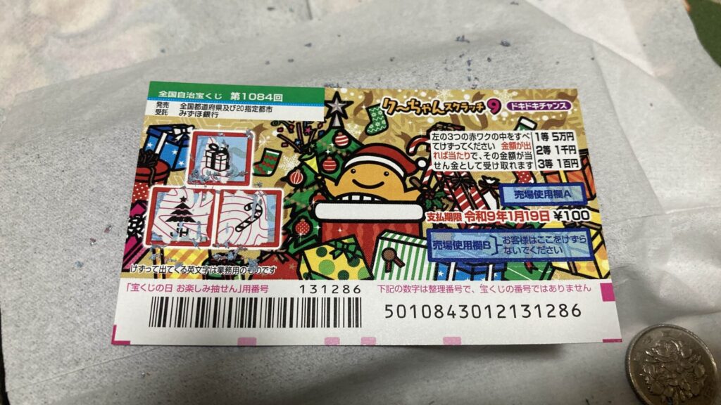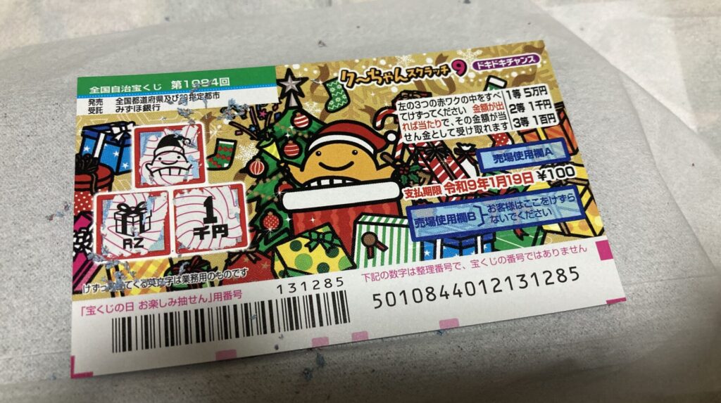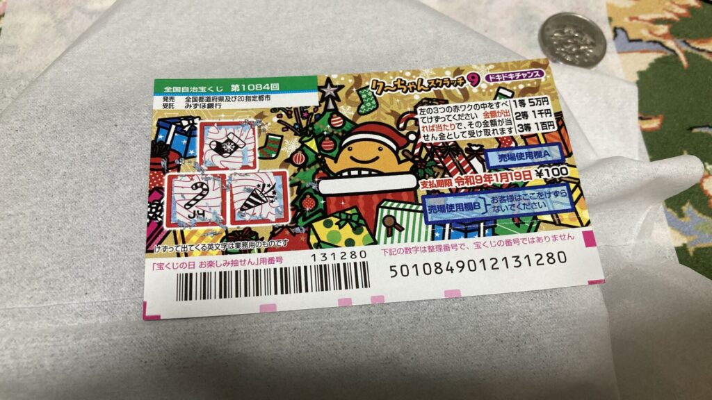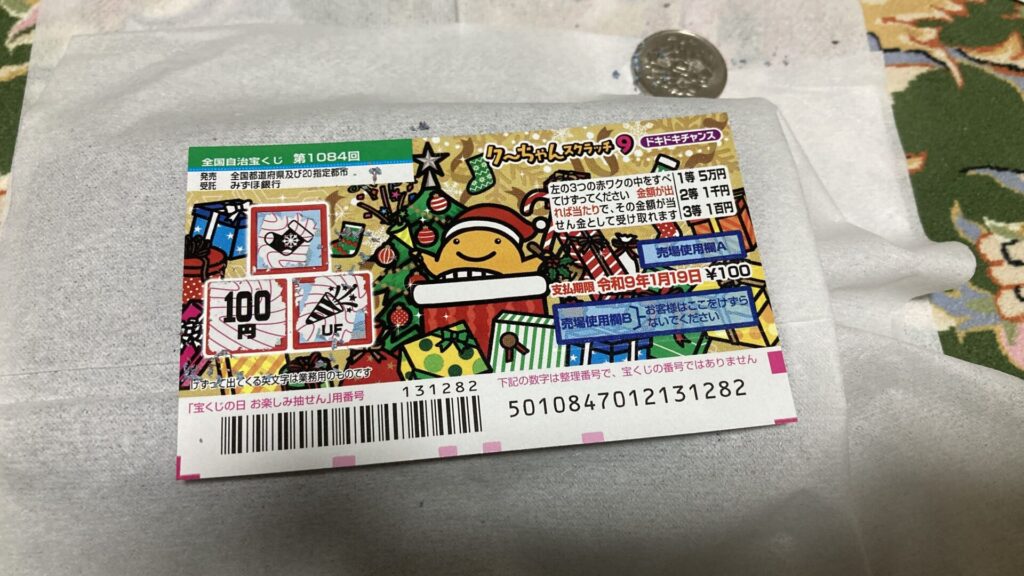 今回は1枚100円のスクラッチが10枚あるので、元の1000円は取り返したいところ。