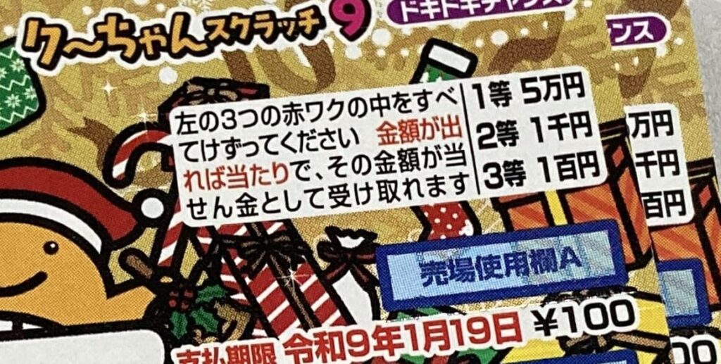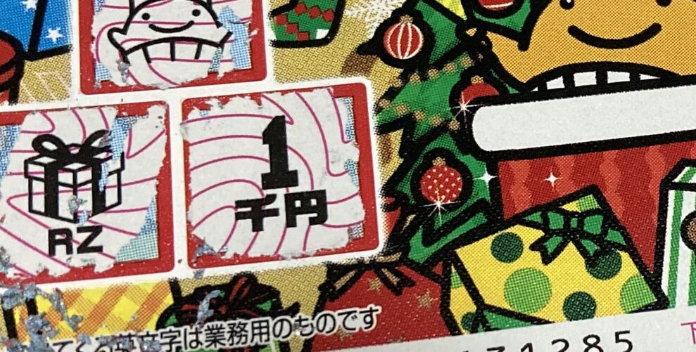 3つ削る場所があり、その枠内に金額が書かれていたら当たりです。