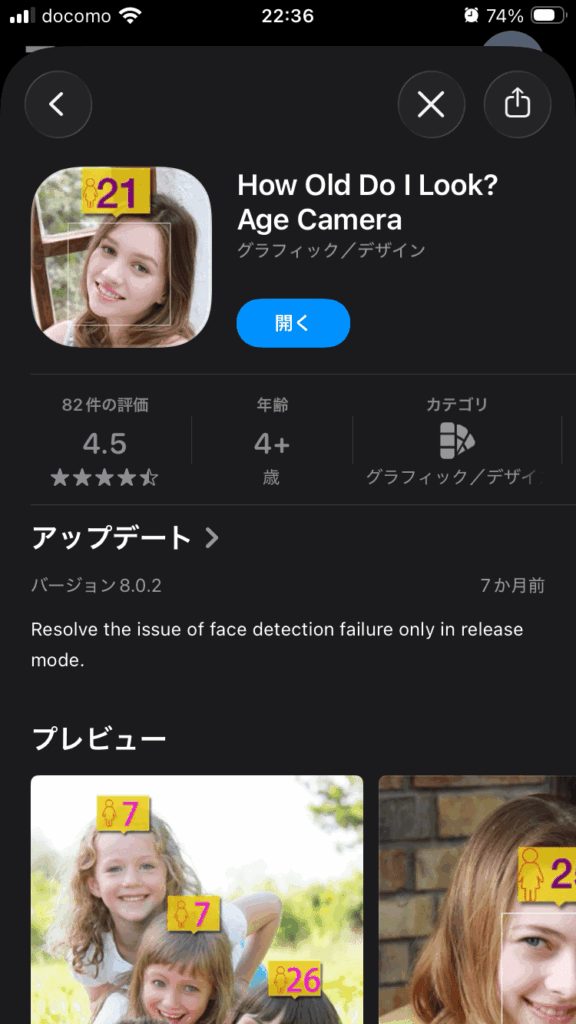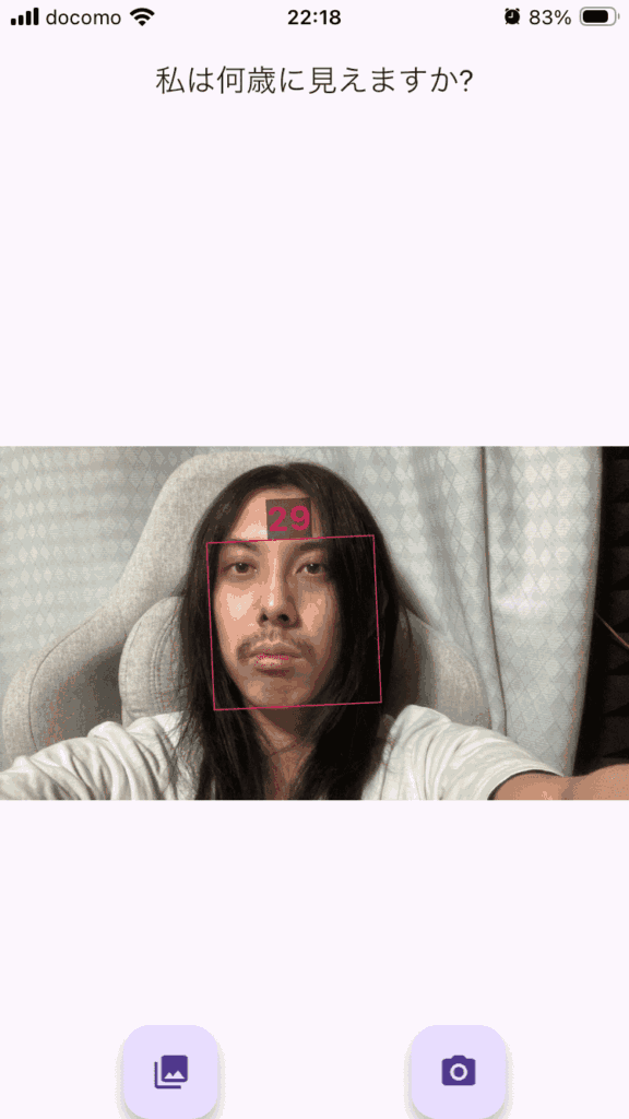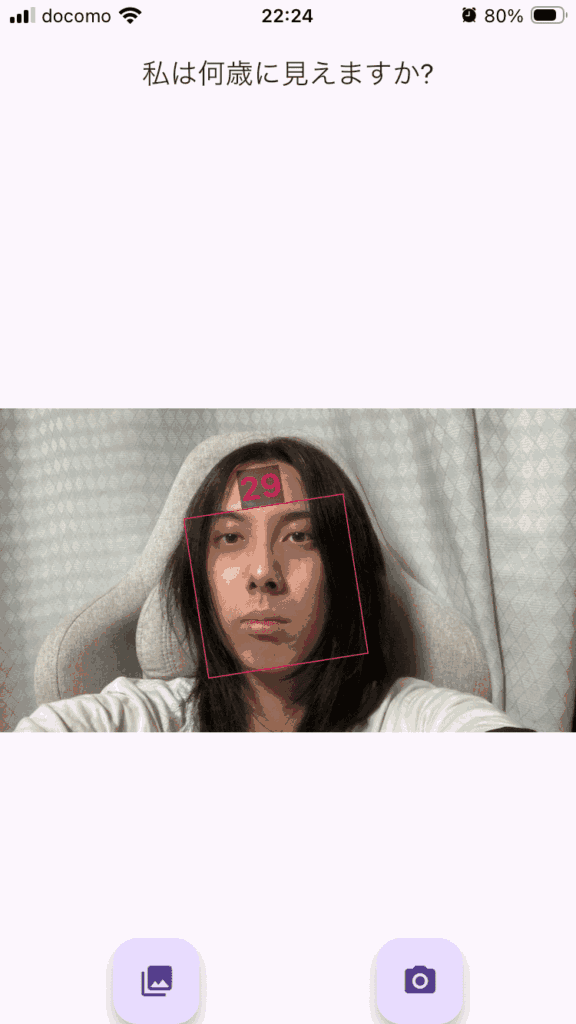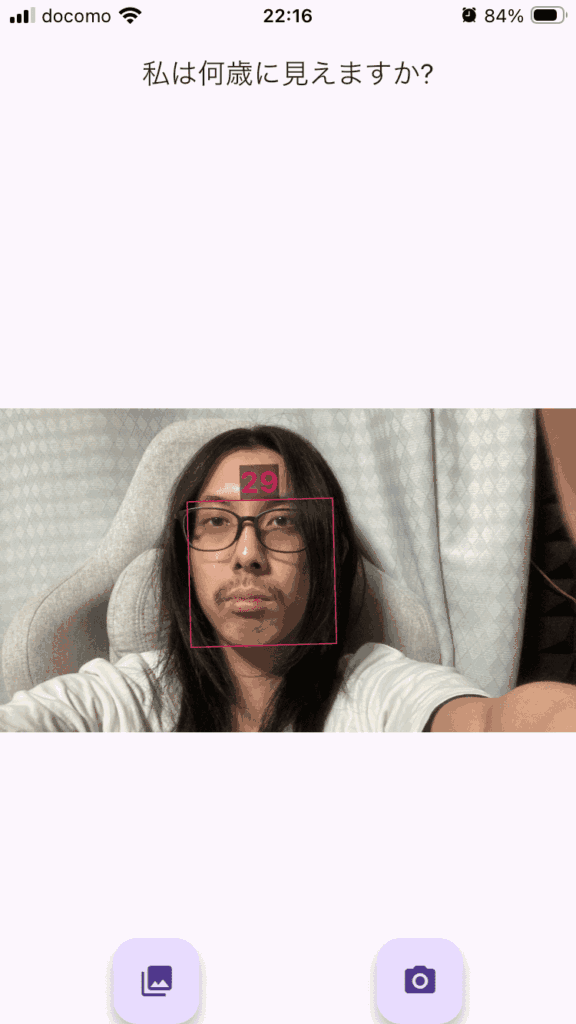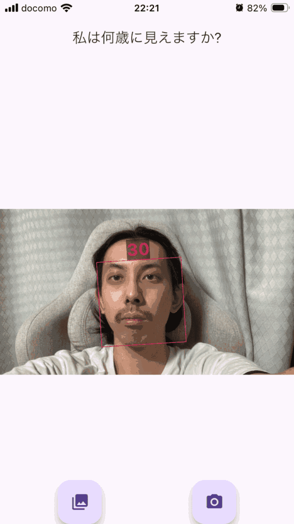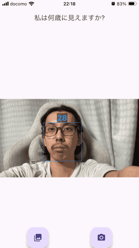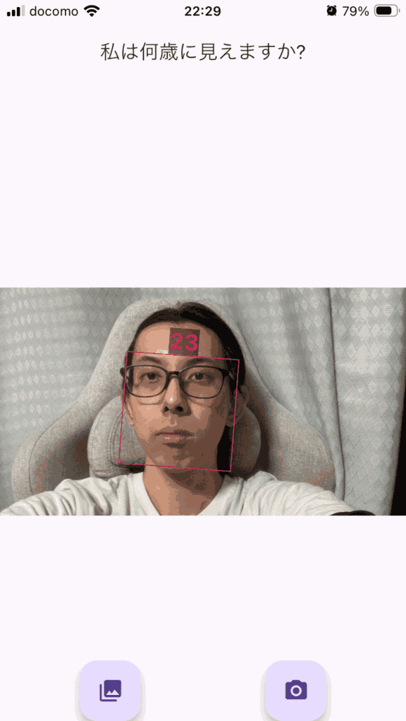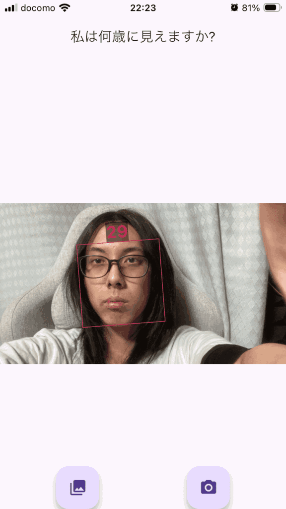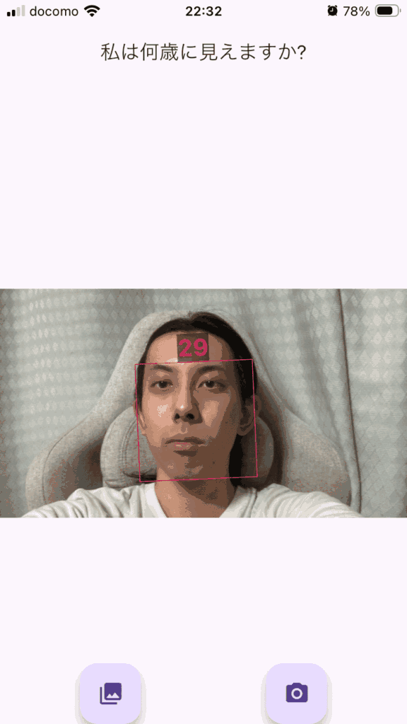というわけで「How Old Do I Look? Age Camera」というアプリで年齢を予想してもらいます。